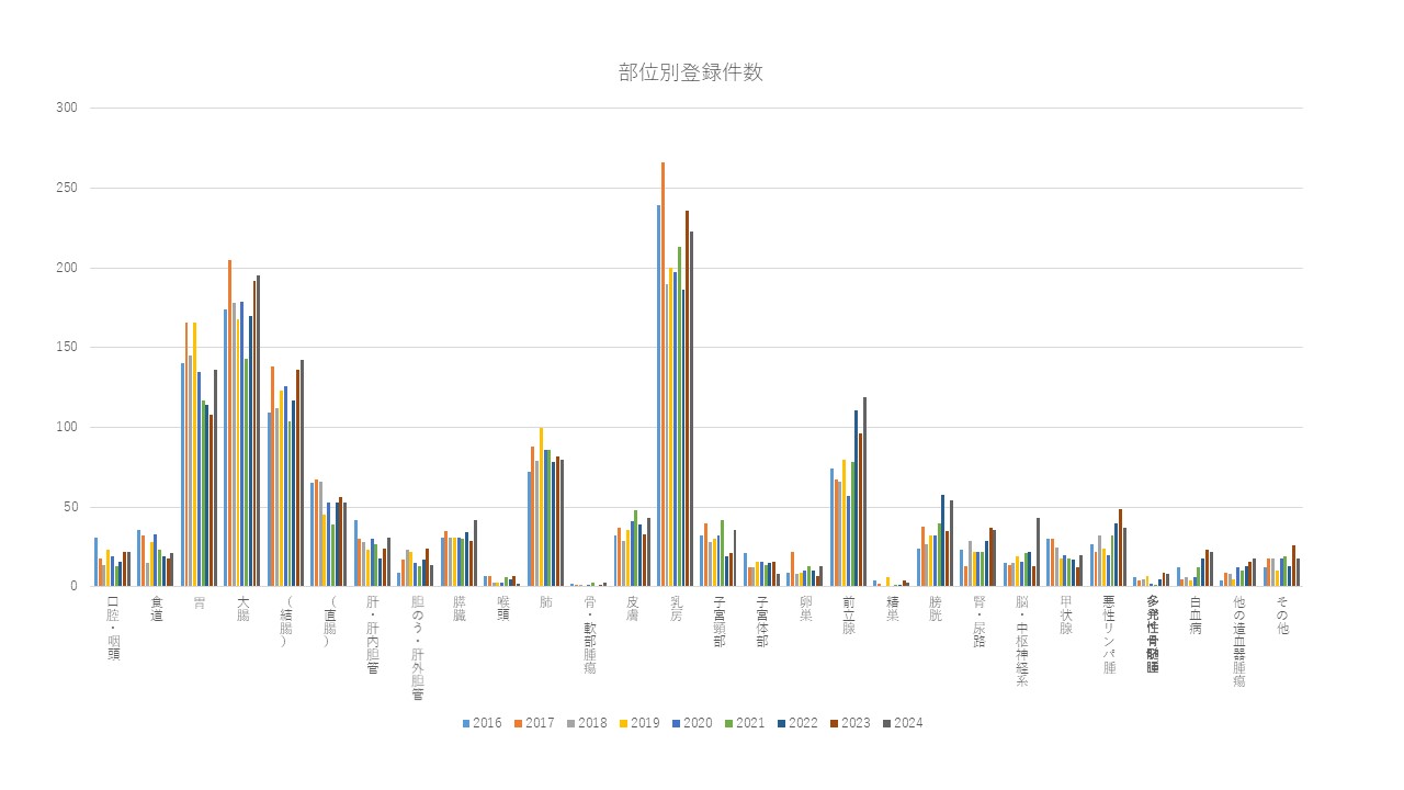 肝・肝内胆管 | 42 | 30 | 28 | 23 | 30 | 27 | 18 | 24 | 31 |