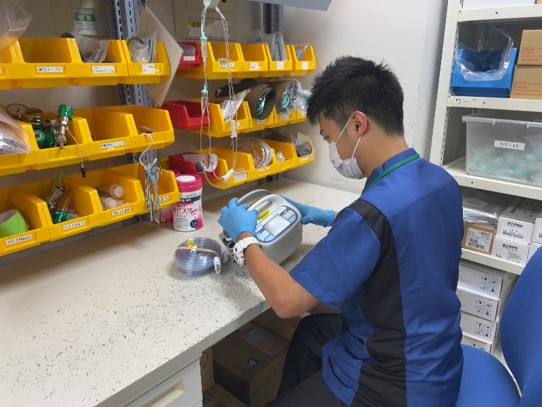当院の臨床工学技士は呼吸・循環・代謝・消化器で使用する機器の操作及び保守点検を行っています。